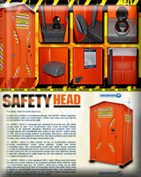 The SAFETY HEAD is a full size portable toilet designed exclusively by CALLAHEAD to deliver a sanitary job-site porta potty as well as adding to job site safety. The bright orange coloring and exterior reflectors will add to highway and road construction safety equipment such as traffic cones, vests, signs and hard hats.