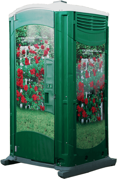 The is another CALLAHEAD designed one-of-a-kind porta potty rental for your special event. Our GARDEN HEAD is a portable restroom that will add to the décor of your party or special event. You will have the look of a beautiful garden of red roses on a trellis with vibrant green hedges that will definitely make a lasting impression to your guests. This is a VIP port a potty that operates as a full service portable bathroom that will astonish your family and friends.