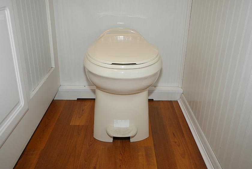 All three restrooms inside the have wide planked wood Armstrong flooring. There is a Dometic thermostat heat and air conditioning system for comfort inside the restroom any time of year. A 15,000 BTU air conditioner will provide comfort during New York's warm summer months. Fan-forced heaters will ensure warmth during the winter season. LED high hat ceiling lights will provide plenty of light inside the restroom. Ceiling vents are available when you want additional ventilation. For convenience, the runs on a generator or standard 110 Volt outlet.