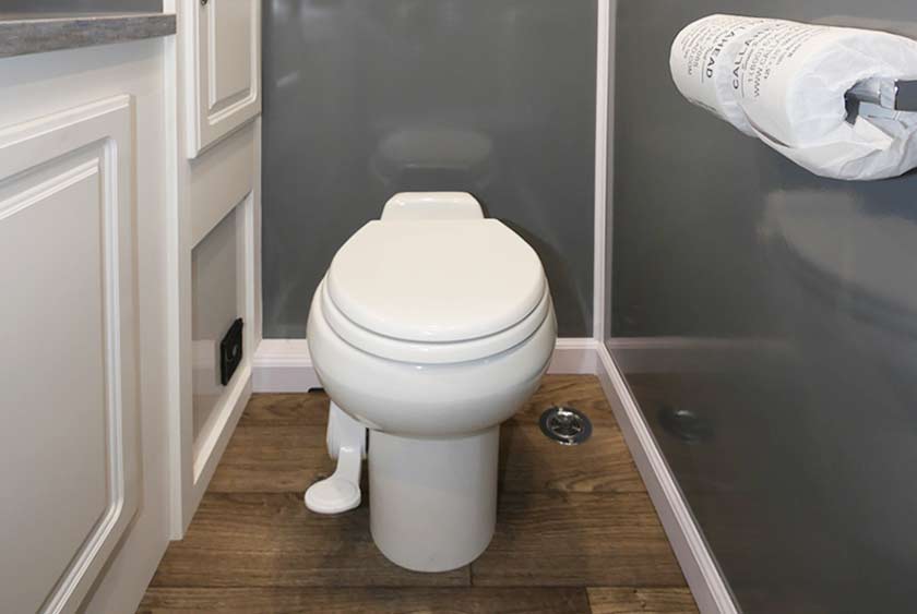 The has thermostat heat, and air conditioning in addition to a wall mounted fan forced in both restrooms. Ceiling installed vents will provide additional ventilation. LED high-hat ceiling lighting delivers plenty of light inside the restroom. Electricity for the operates from a generator or standard 110-volt outlet.