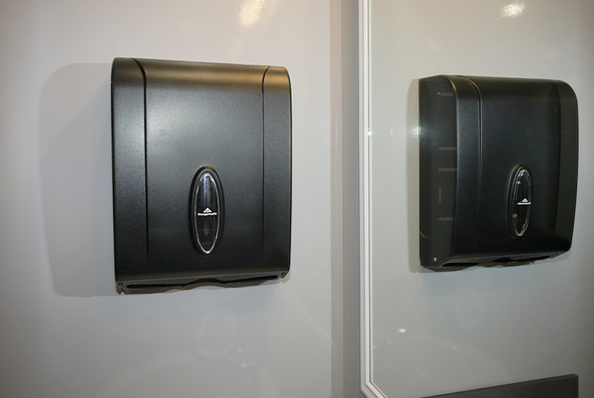 The delivers clean and private restroom facilities that are climate controlled with heat and air conditioning for comfort year round. The is equipped with vanity sinks, and soap and hand towels to help eliminate the spread of germs.