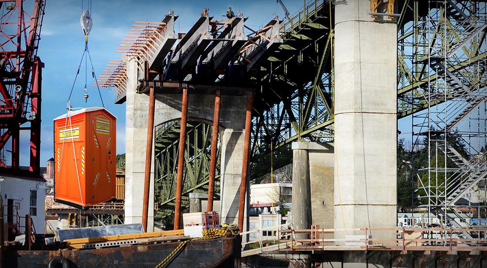 Construction Job Sites • Contractor Job-sites • Highway Construction • Parkways • Street and Road Construction Sites • Emergency and Disaster Locations • Bridge Construction • High Rise Building and Apartment Building Construction Job sites • Airport Locations • Tunnel Construction • Sewer Job sites • Over Water onto Barges, Ships and Aircraft Carriers • Movie and Commercial Set Locations • New Home Construction and House Renovations • Beach Locations • Park Locations • Parking Garages • Manufacturing Plants • Parking Lots • Lumber Yards • Bathroom and Restroom Remodeling • Truck Yards • Marinas • Car Lots • Municipalities • Remote Locations • Any Long-term Job-site Location in need of Portable Restroom Facilities